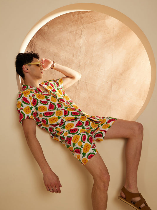 SAVE 20%Men's Cream Block Printed Co-Ords