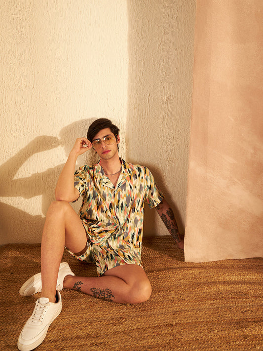 Geometric Printed Cuban Collar Co-Ords